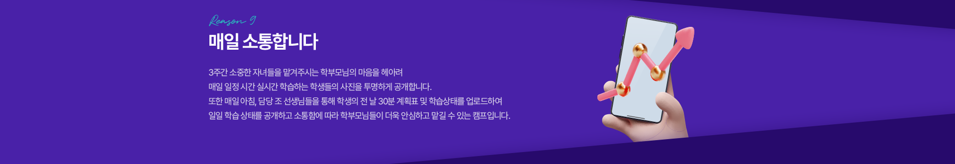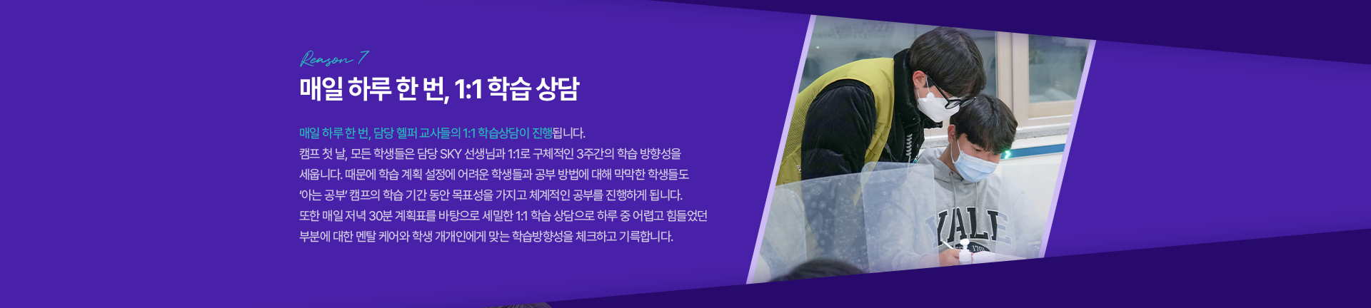 관리하며, 담당 멘토 선생님과 1:1 학습 상담을 진행하며 학습을 보다 구체적으로 점검하고 살핍니다.